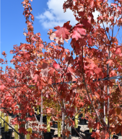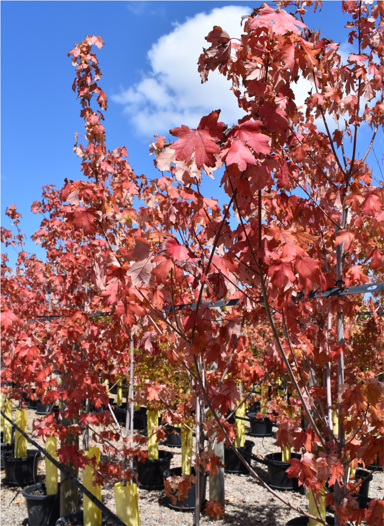 Mature height 12–18 m; spread 8–12 m; vigorous growth; deciduous; excellent fall colour.